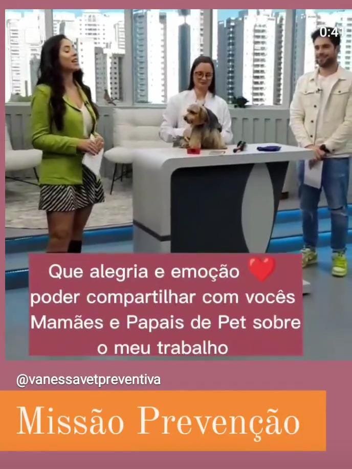 Eu já fui convidada 2x para dar entrevistas em Rede Nacional e falar sobre a importância da Prevenção em Pet.